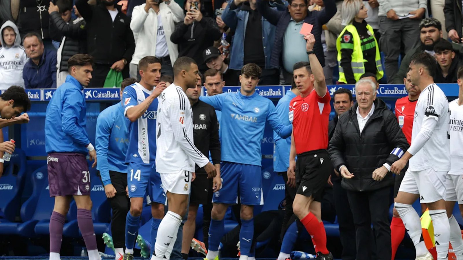 তবে এই গোলে আনন্দ বেশি সময় স্থায়ী হয়নি। ৩৮ মিনিটে বিপজ্জনক ট্যাকল করার অপরাধে ভিএআরের সহায়তায় সরাসরি লাল কার্ড দেখেন কিলিয়ান এমবাপ্পে। ফলে ম্যাচের প্রায় এক ঘণ্টা সময় ১০ জন নিয়ে খেলতে হয় রিয়ালকে। দ্বিতীয়ার্ধে আলাভেসের মানু সানচেজও লাল কার্ড দেখলে দুই দলই সমান সংখ্যায় নামে মাঠে।