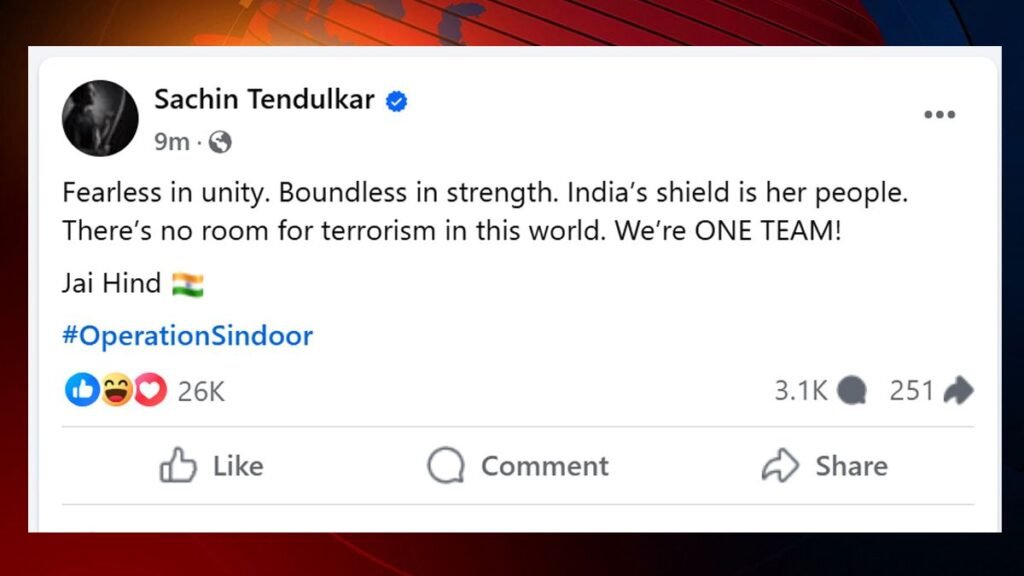 এই মুহূর্তে ভারত-পাকিস্তান সীমান্ত পরিস্থিতি অস্থিতিশীল হলেও, দুই দেশের সাধারণ জনগণের মাঝে শান্তি ও সম্প্রীতির আকাঙ্ক্ষা এখনও দৃশ্যমান। শচীনের মত জনপ্রিয় ব্যক্তিত্বদের পক্ষ থেকে সন্ত্রাসবিরোধী বার্তা সেই আশাকেই আরও শক্তিশালী করে তোলে।