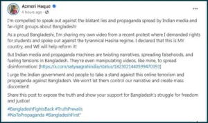 তবে, ভারতীয় কিছু গণমাধ্যম এই ঘটনার ভিডিও ক্লিপ থেকে বাঁধনের বক্তব্যকে বিকৃত করে মিথ্যাচার এবং বিভ্রান্তিকর তথ্য ছড়াচ্ছে বলে অভিযোগ করেছেন বাঁধন। ফেসবুকে দেওয়া এক পোস্টে তিনি জানান, ভারতীয় গণমাধ্যম ও উগ্র ডানপন্থী গোষ্ঠীগুলো তার বক্তব্যের ভিডিও থেকে স্থিরচিত্র সংগ্রহ করে তা সাম্প্রদায়িক ইস্যু হিসেবে প্রচার করছে। তাদের দাবি, বাঁধন নাকি হিন্দু এবং কান্না করতে করতে বাংলাদেশ ছাড়ার কথা বলছেন, যা সম্পূর্ণ মিথ্যা এবং ভিত্তিহীন।